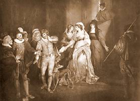 Although most critics find Bertram insufferable and “noxious” (Bloom 346), “a callow young man, easily swayed and in desperate need of moral guidance” (Wells 238) — “to call him a spoiled brat is not anachronistic” (Bloom 345) — “Bertram had surely good reason to look upon the king’s forcing him to marry Helena as a very tyrannical act. Indeed, it must be confessed that her character is not very delicate, and it required all Shakespeare’s consummate skill to interest us for her” (Coleridge, qtd. in Garber 624). In addition to the issue of “disparagement” in their respective social rankings (Anderson 47), “Helena is not exciting, exotic, or even romantic to Bertram, who seeks adventure, sexual provocation, and an exogamous relationship” (Garber 625). “Helena presents Anne [Cecil] at her most ambitious and aggressive” (Anderson 220). Insofar as Anne was guilty of “conniving” with her father (Ogburn and Ogburn 97), Oxford the “reluctant bridegroom” (Ogburn and Ogburn 822) would have been reluctant to forgive. Still, the play seems indeed to be written at a stage in Oxford’s life “when Hamlet still trusted Ophelia and Polonius” (Ogburn and Ogburn 161), with the King a mix of Elizabeth and Burghley (Ogburn and Ogburn 163-164) and Lafew entirely Burghley before 1576 (Ogburn and Ogburn 164).