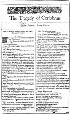 North’s 1579 English translation of Plutarch’s Parallel Lives served as primary source material for three of Shakespeare’s plays, including Coriolanus, though the “biography” is mostly dubious legend since the events here — in the 490s bce, about fifteen years after the rape of Lucrece — “take place a century before the destruction of the Roman annals by the Gallic invaders” (Asimov 213).