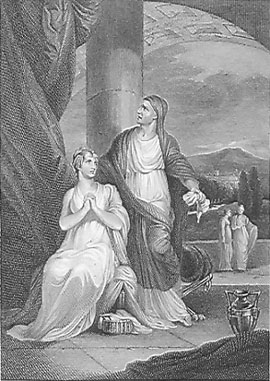 Valeria wants Virgilia to accompany her in visiting a sick neighbor. She thinks Virgilia is a bit foolish to be so worried about her husband that she won’t be more sociable. Valeria tries to cajole Virgilia with a comparison between her and Penelope in the Odyssey. Valeria has even heard promising news about the wars, but Virgilia is adamant; and so, despite the relative quietness of Virgilia even in the face of the pressure and the iron will of her mother-in-law, she prevails, and the two other women depart without her.