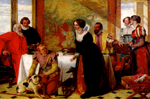 Silvia is disgusted since she knows the origin of the ring. She asks the “page” about Julia’s appearance: is she “fair”? “How tall was she?” (IV.iv.148, 157) — not unlike Cleopatra regarding Octavia (and hence Elizabeth regarding Mary Queen of Scots), but without the jealousy here. Julia agonizes over the picture, to which she compares herself, jealous but baffled. Silvia’s hair is auburn (IV.iv.189) and her eyes grey (IV.iv.192) — features of Queen Elizabeth (Clark 315; Ogburn and Ogburn 225). “She [Julia] and Launce are the only two people in the play prepared with open eyes to suffer and be humiliated for love” (Barton 179).
